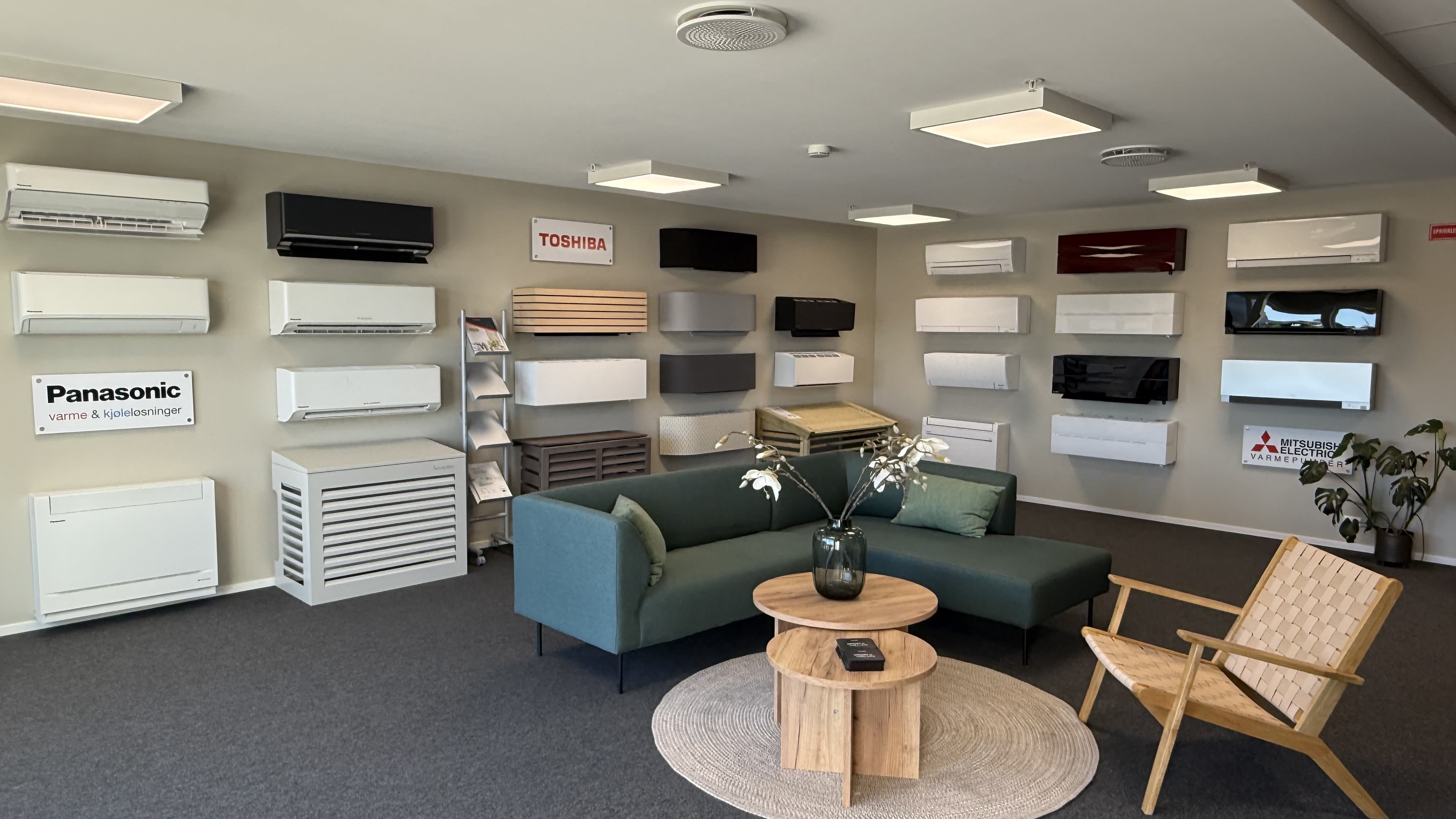 I våre moderne lokaler på Mjåvann finner du en stor og inspirerende utstilling der vi viser frem de nyeste modellene fra de kjente merkevarene vi representerer. Her kan både forhandlere og sluttkunder oppleve varmepumpene på nært hold, få faglig veiledning og lære mer om hvilke løsninger som passer best til ulike behov og boliger.